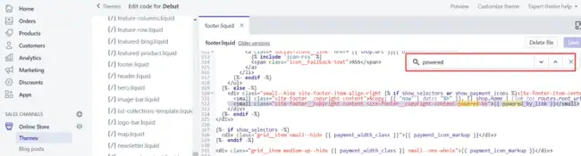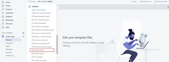 Click ‘footer.liquid’ to open.